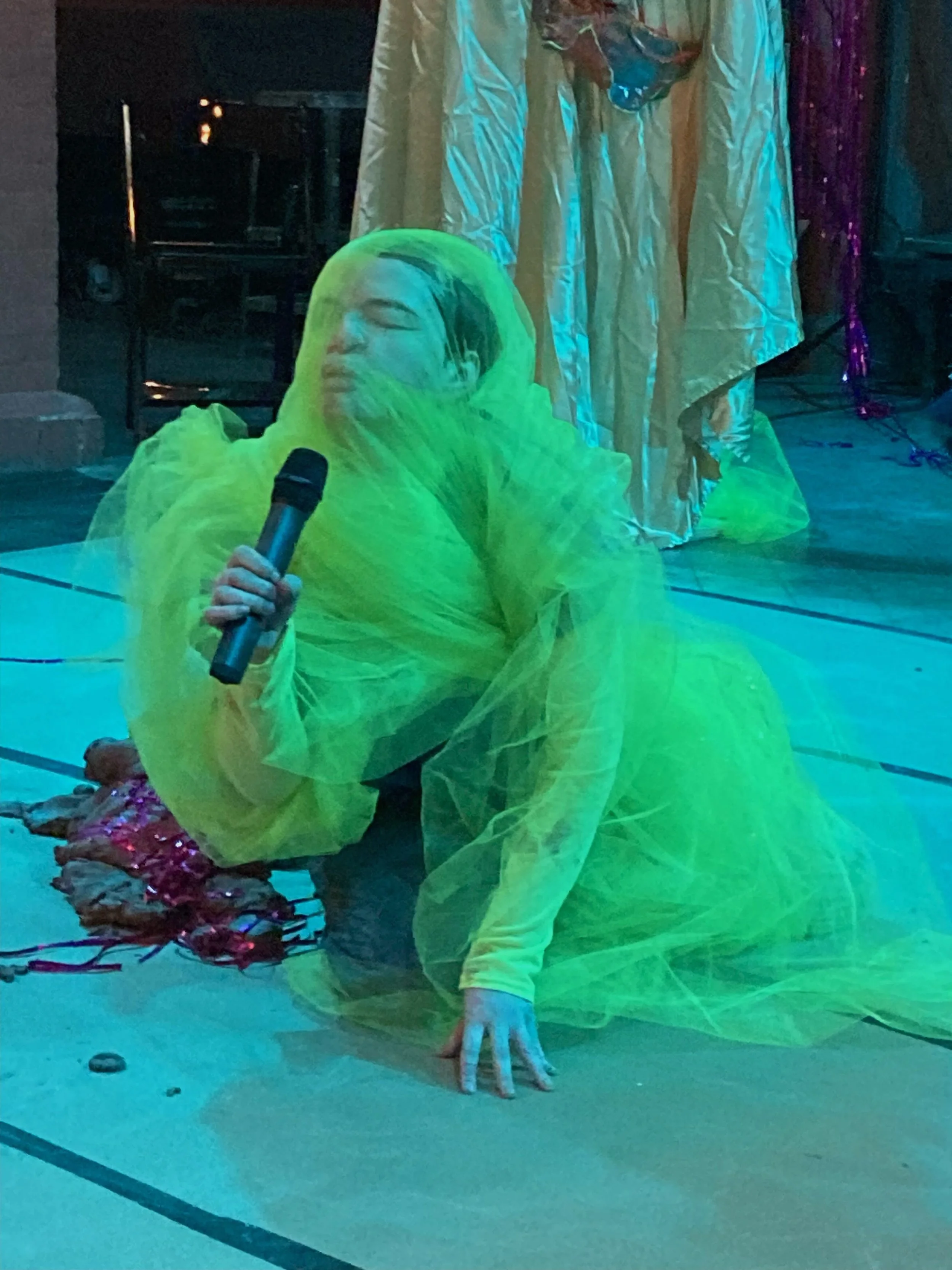 Shannon Brooks is a multisensory, multimedia artist grounded in iterative, time-based experimentation. My practice engages with the full range of our senses and draws on ritual, material, and performance, to construct strange worlds between the physical and the ephemeral. Shannon approaches materials as living entities that hold historical memory fossilized in their bodies, existing in a constant state of becoming and unbecoming. Their practice researches the interconnected systems between ecology, the body, performance, expired film, disability, power, clay/rock, residue, ghosts, geologic time, movement, textiles, and memory. Shannon's practice decentralizes sight as the ultimate means of validating experience, creating cacophonies of textures and sounds to explore the dimensions of our senses. As a Disabled/low-vision person, Shannon understands accessibility as a creative force that transforms time, space, and power structures.